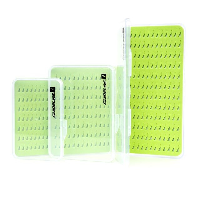 Slim Nymph is perfect for carrying your nymphs, these take up very little space in your vest and are light. All three boxes come with green slitfoam and is easy to operate.