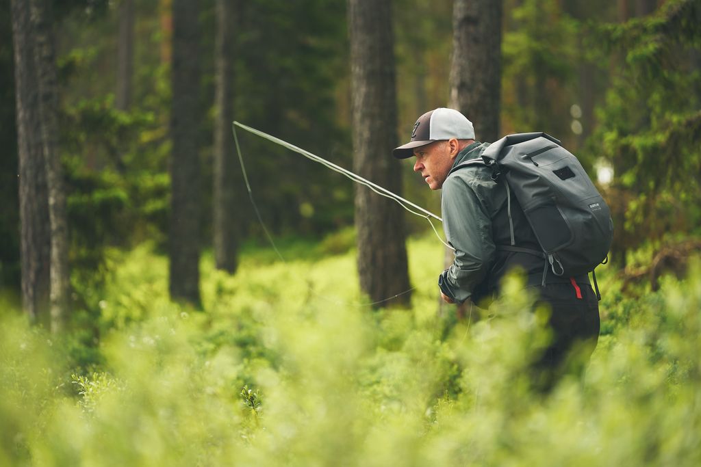 It can be closed and secured either at the top with a buckle-to-buckle connection or with the buckled straps on each side. The backpack's narrow design ensures it won’t interfere with your casting or get snagged while navigating rough terrain.