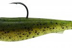 This full-body soft-plastic swimbait delivers a tail-thumping action and a side-to-side roll or shimmy that entices big fish to strike.