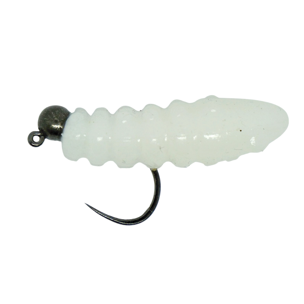 Soft Larva Trout Grub White & Black Nickel